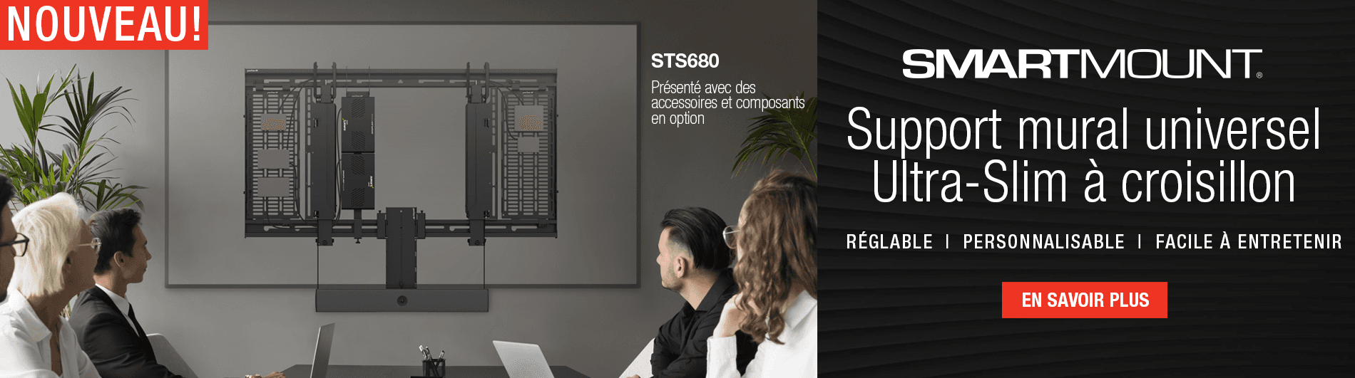 Nous ajoutons sans cesse de nouveaux produits pour suivre l'évolution constante de la technologie audiovisuelle. Installation plus facile, durabilité accrue, esthétique améliorée : vos besoins guident notre processus de fabrication, de la conception à la production.